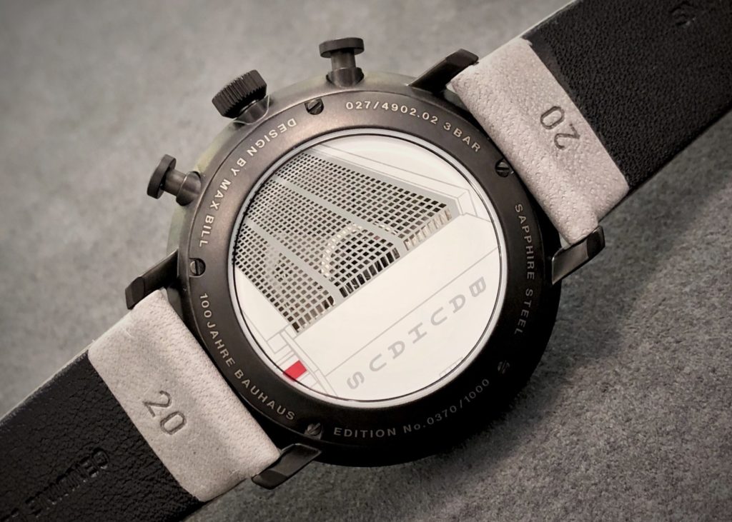 裏蓋にバウハウスの建物が刻印された特別仕様です。