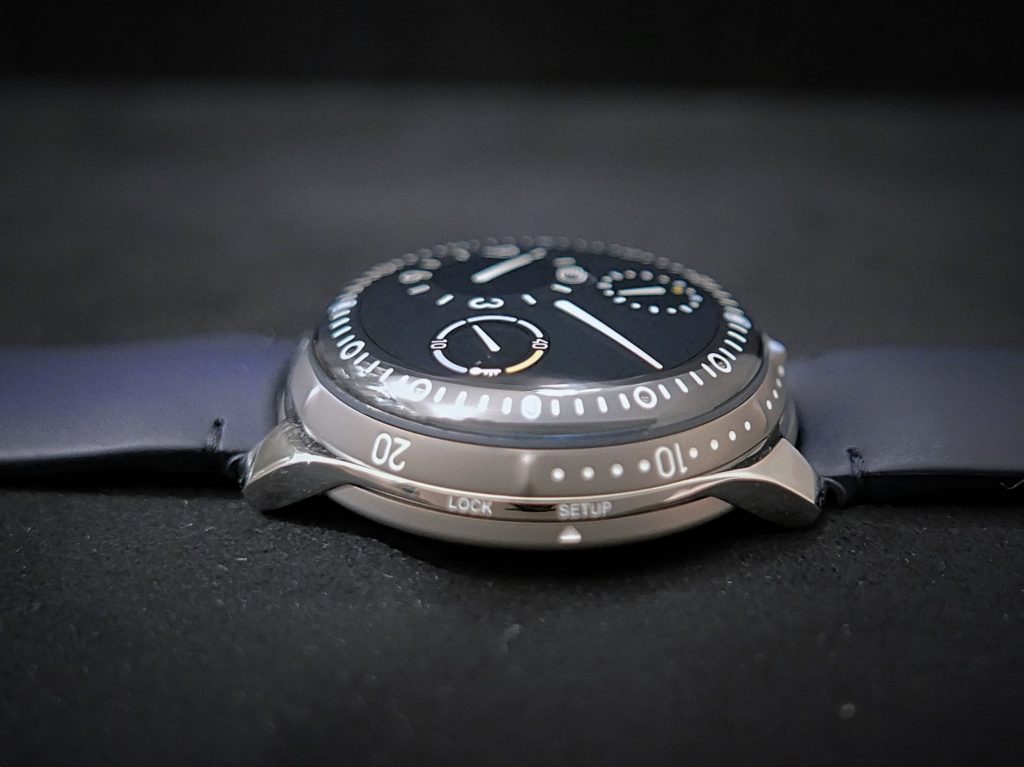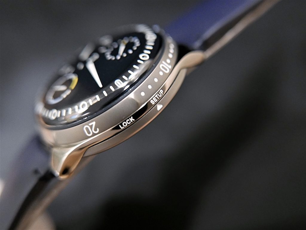 Ressence Compression Lock System(RCLS)と呼ばれるガスケット(防水性を保つ為のパーツ)のロックと圧縮のための機能があり「ROCK」「SET」で切り替え操作を行います。