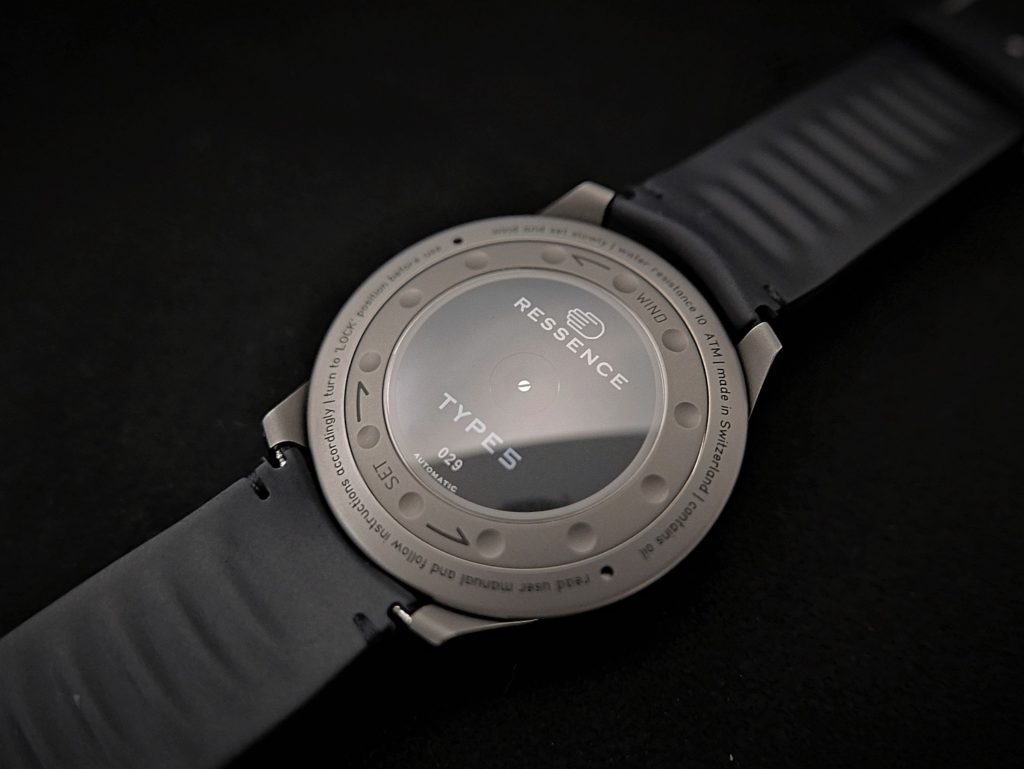 リューズがないレッセンスの時計は、ケースバックを操作することで時計の巻き上げと時刻の設定、両方を兼ねます。
