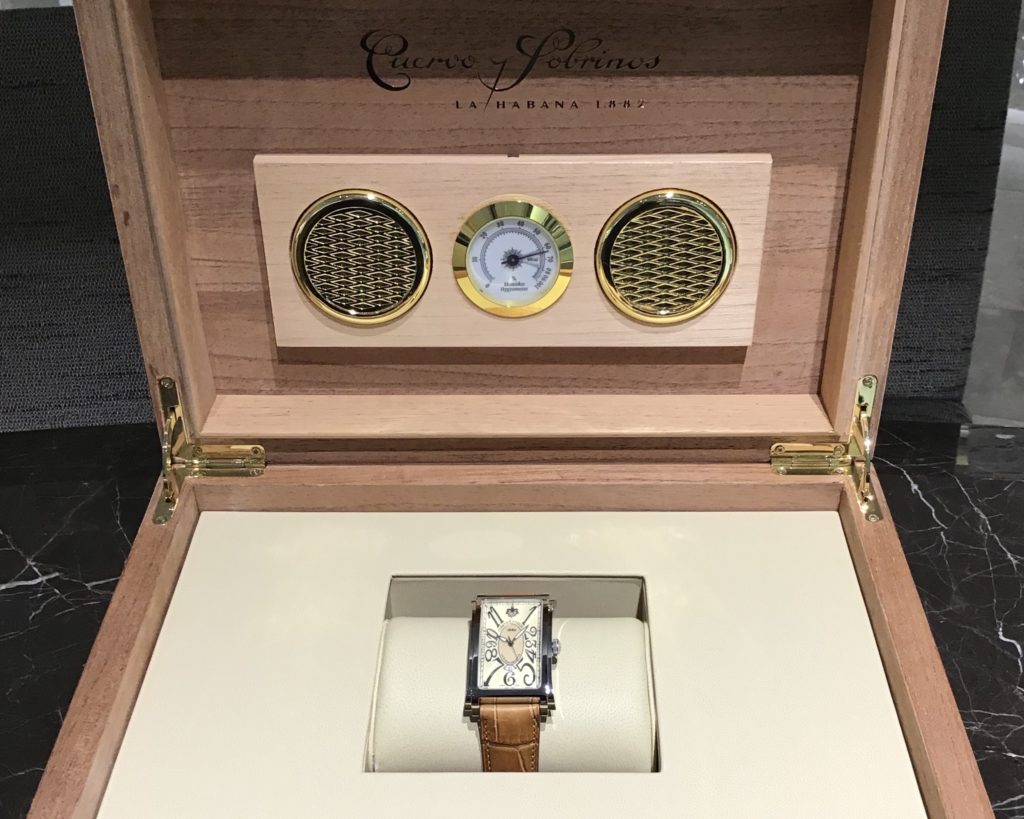 付属の時計BOXはキューバの特産品である葉巻を収納するヒュミドール仕様となっております。