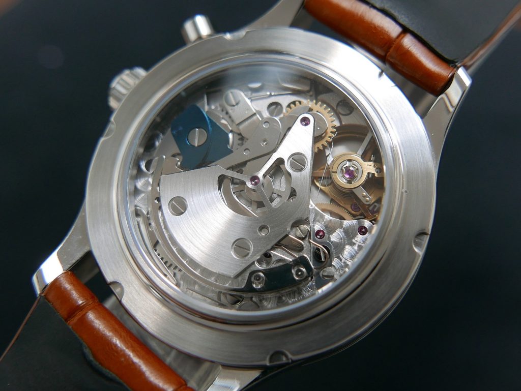 ETA7750をベースに改良したムーヴメント〈Cal.A08-MONO〉。