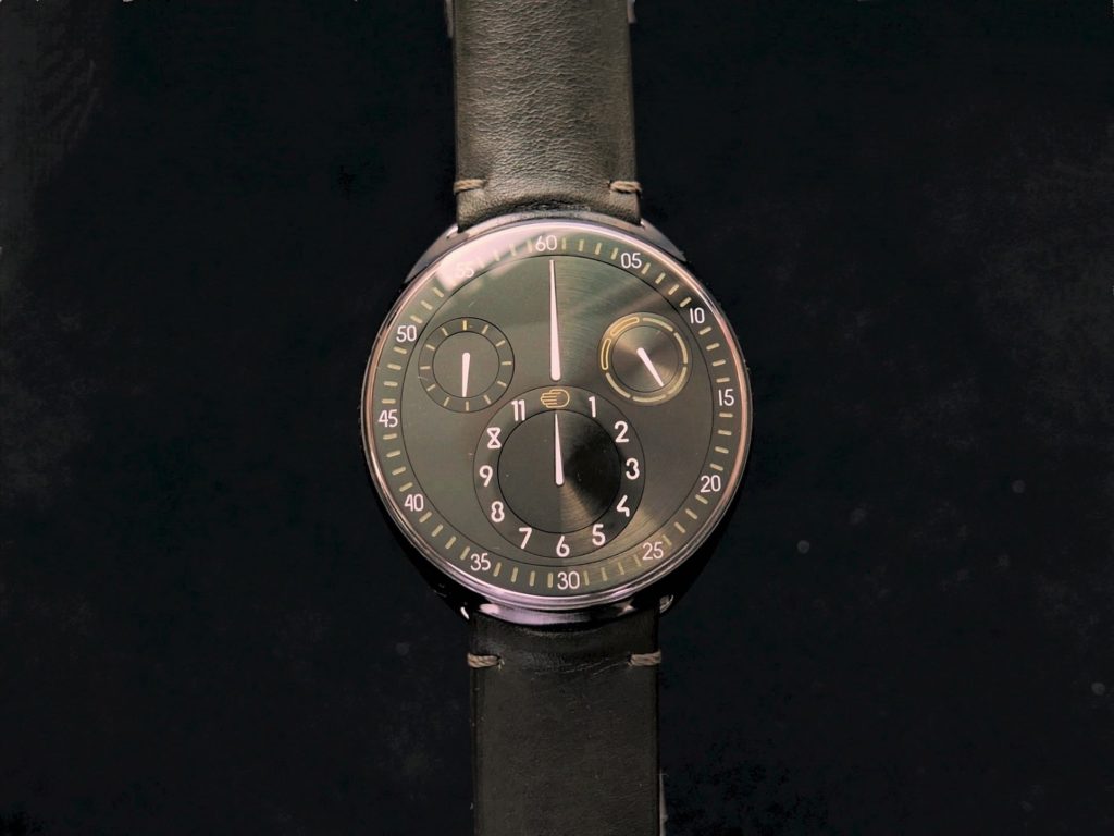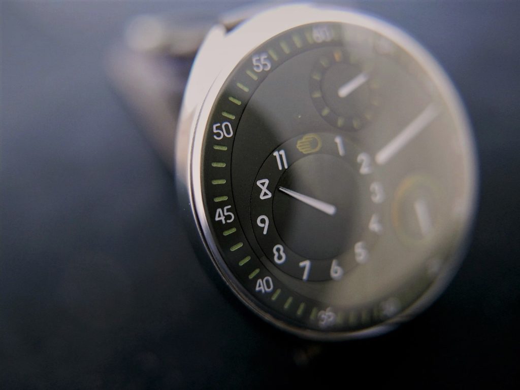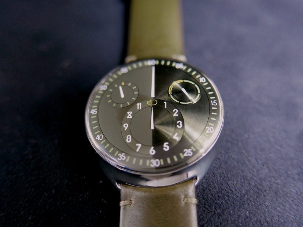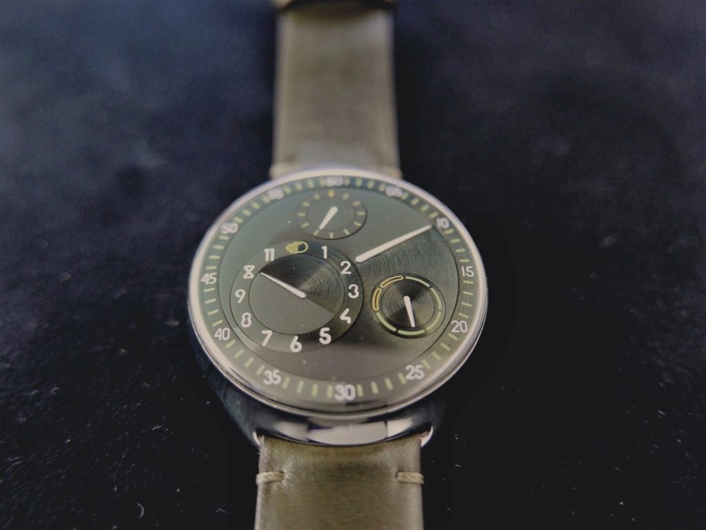 文字盤カラーはここ数年各ブランドから発売され、数を増やしつつあるグリーンです。レッセンスのフィルターを通すと深みのあるダークオリーブグリーンが、どこか上品さを感じます。