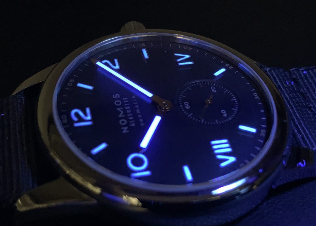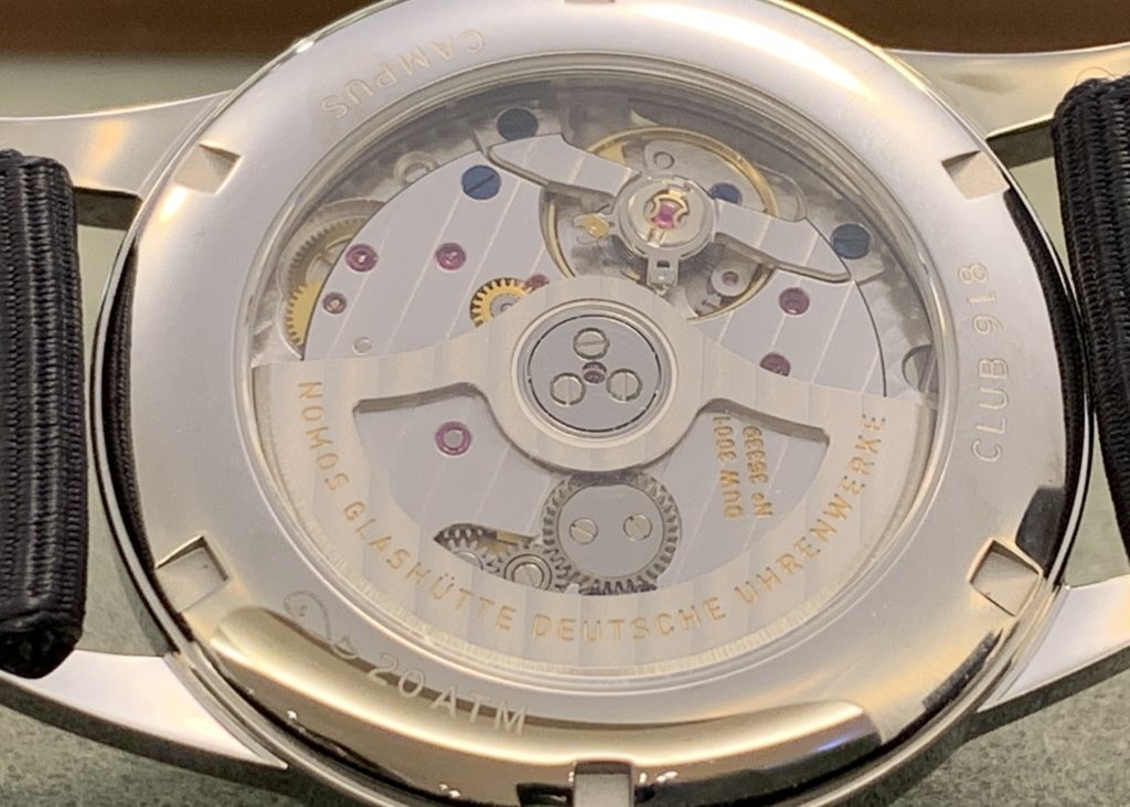 時計に触れていて感じることは、ノモスの自動巻きモデルはローターの巻き上げ効率がとても良いということです。わずかな距離を持ち運びするだけで時計が動き始めます。