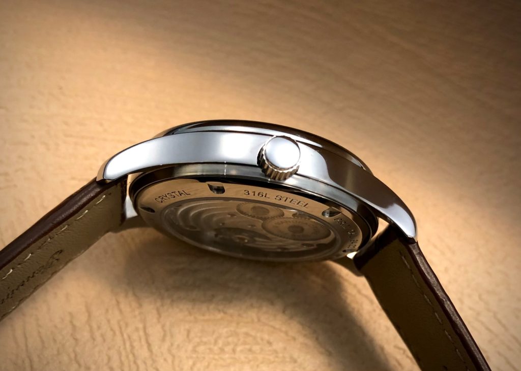 ケース径は現行品では珍しいコンパクトな36㎜。