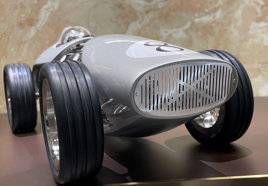 流線形の美しいアルミニウムボディには本物の車と同じ手法のカラーリングが施されています。
