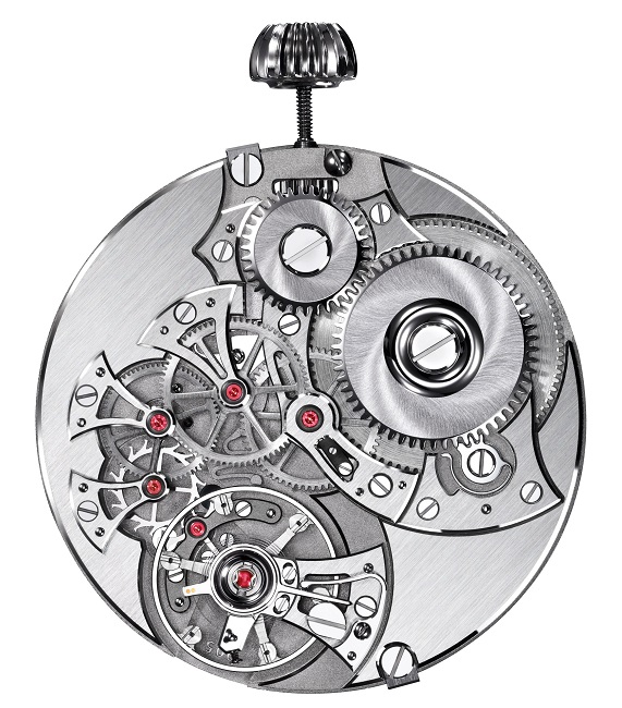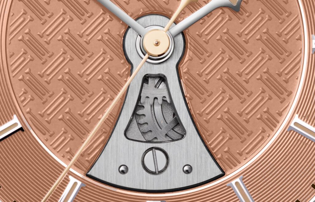 「ペチコート」シェイプと呼ばれる6時位置にある独特の形状の開口部からは初のセンターセコンドのムーブメントを覗くことができます。