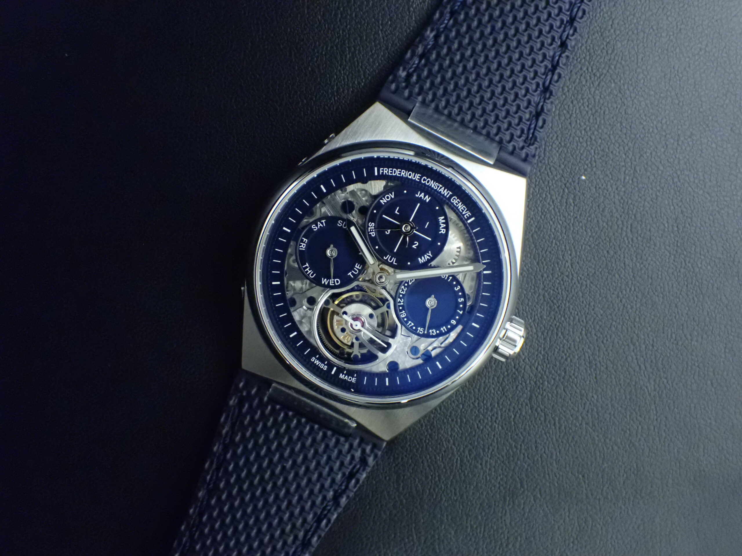 スイスの時計メーカー<フレデリック・コンスタント>は「手の届くラグジュアリー」というコンセプトをもとに、様々なモデルを発表してきました。ご紹介する「ハイライフ」は2020年にデビューした新シリーズで、ケースとストラップが一体化したスポーティーなルックスをもつデザインとなっています。今回はその中から世界3大複雑機構のうちの2つ、パーペチュアルカレンダーとトゥールビヨンを両立させた限定モデルをご案内します。