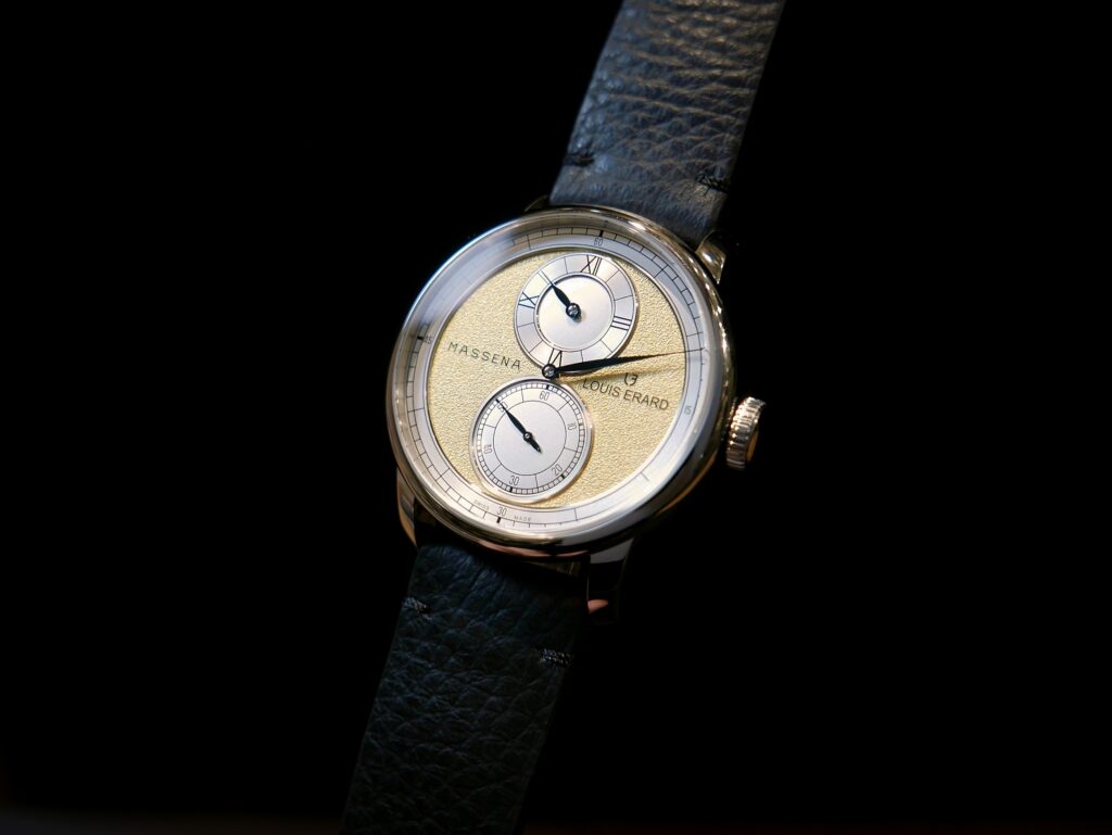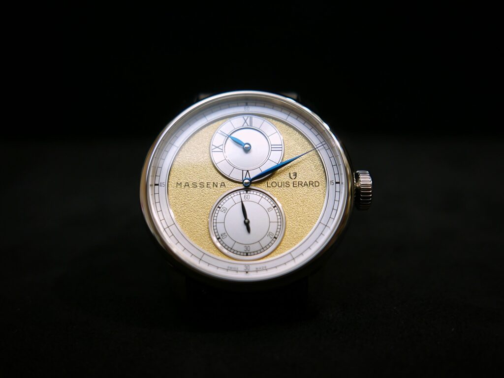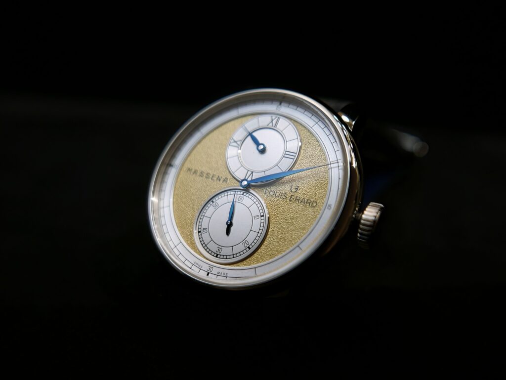 アンティコルムの元CEOでもあり著名な時計コレクターとしても知られているウィリアム・マッセナ氏が主宰のMassena LAB(マッセナ ラボ)とのコラボレーションで生まれた今モデル。ルイ・エラールコラボレーションモデルは現代的デザインの作品が多い中、アンティークウォッチに造詣が深いマッセナ氏の影響がうかがえる古典的な雰囲気の漂う作品となっています。