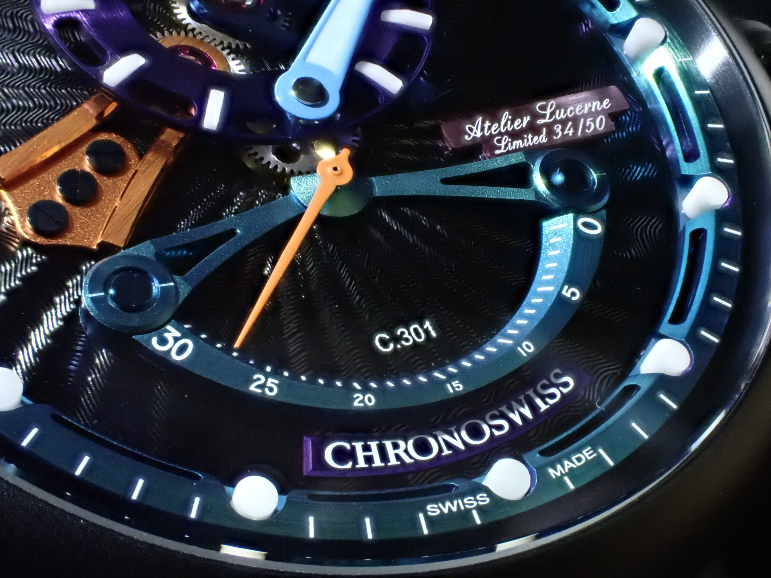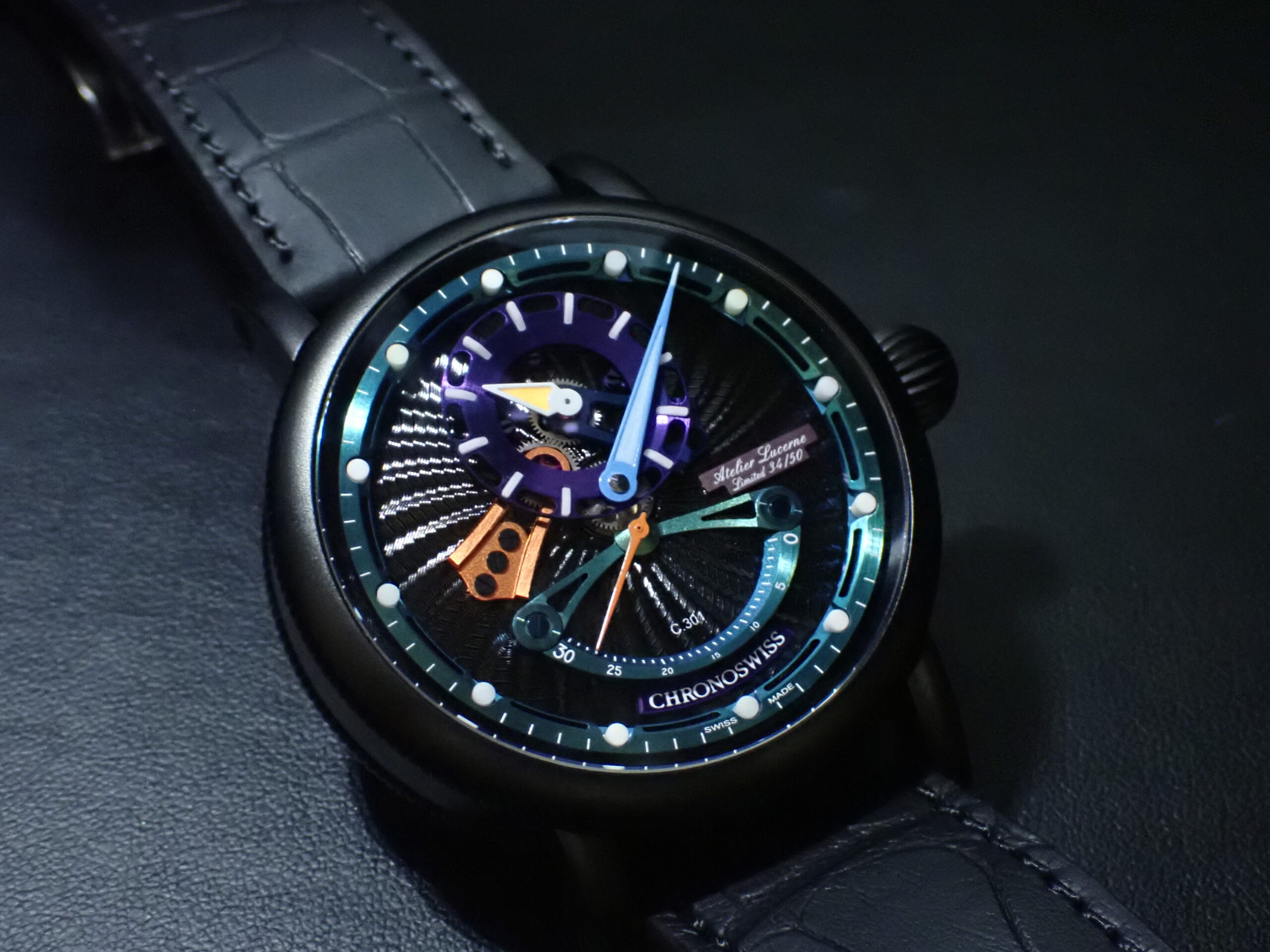 <クロノスイス>はクオーツ時計全盛期の1983年に、ドイツ人時計師ゲルト・R・ラング氏によって設立、彼らのものづくりは、職人による伝統技法が施されたスイス製機械式時計に敬意を表し、その復興に尽力しました。2012年からはオリバー・エブシュタイン氏がその志を受け継ぎ、スイス/ルツェルンにアトリエを移転。伝統的な技法を守りながらも、近年ではファッショナブルなモダンメカニカルウォッチにも力を入れています。今回ご紹介する「キャンディショップ」は伝統的な職人技とモダンアートが融合した50本限定の新作です。