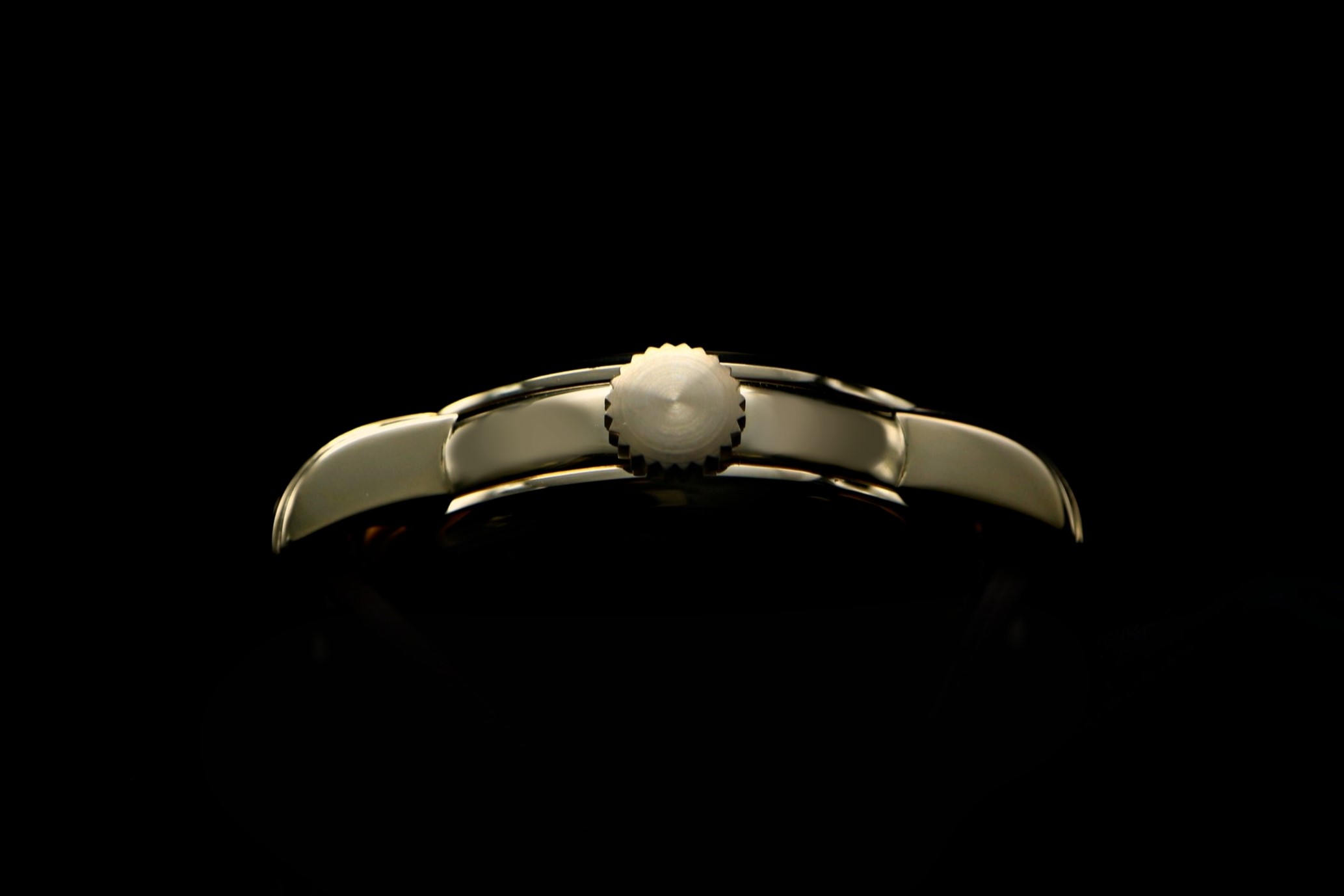 ケースも18KYGを使用し、37mmと比較的小ぶりなサイズ感を取ることで、過去のタイムピースを思わせる趣があります。ラグには少し段をつけて変化を施し、ベゼル部分は内側にカーブをかけたコンケーブベゼルとなります。