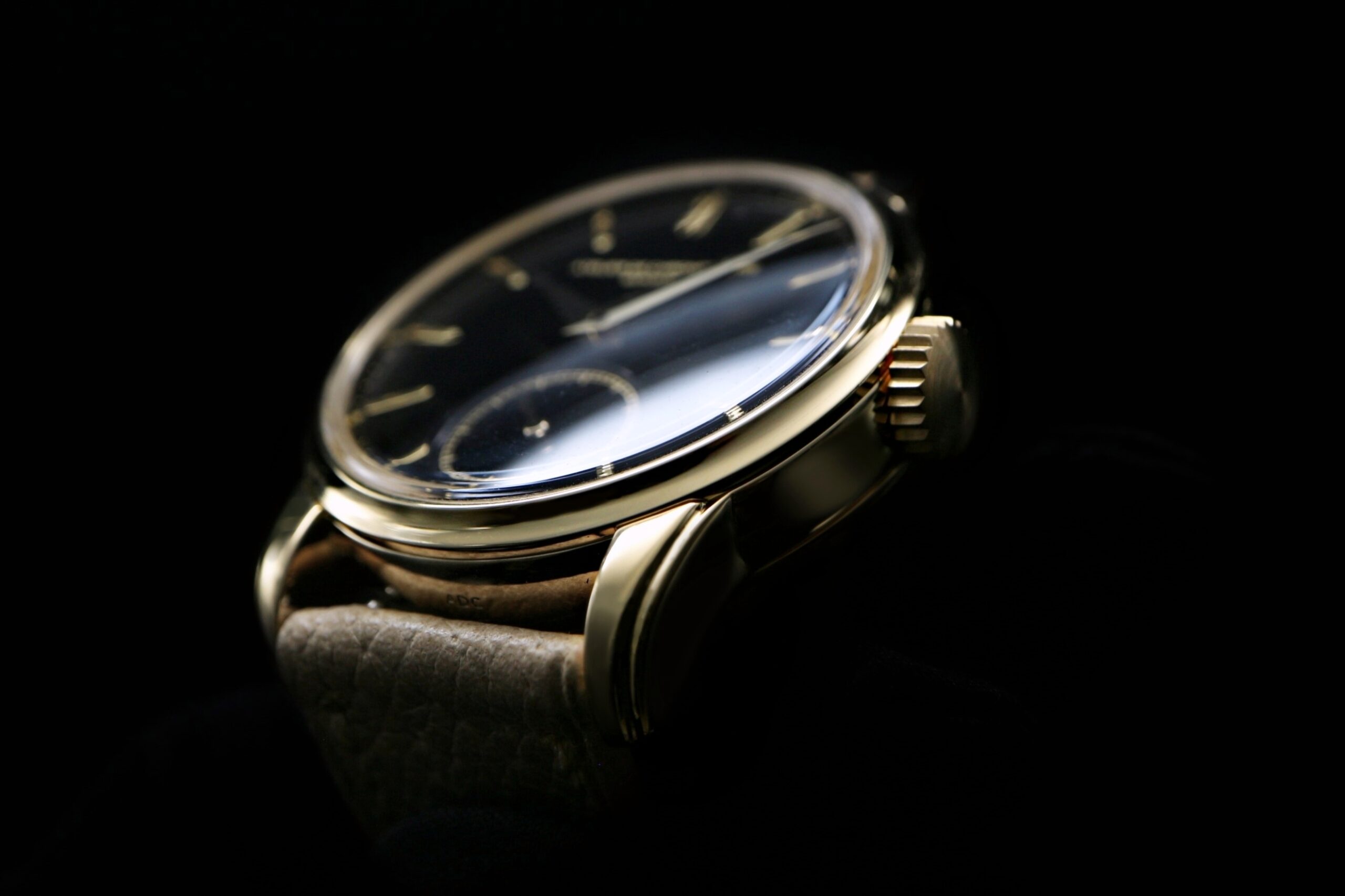 ムーブメントはAdC自社ムーブメントとなるcal,M284を使用。こちらも1940年代ヴィンテージ、天文台クロノメーターを思わせるムーブメントのレイアウトに仕上がっています。現代ではほとんど見られなくなった18KYGとブラックダイヤルの組み合わせは、ヴィンテージでもコンディションの良いものが非常に少なく希少な存在です。