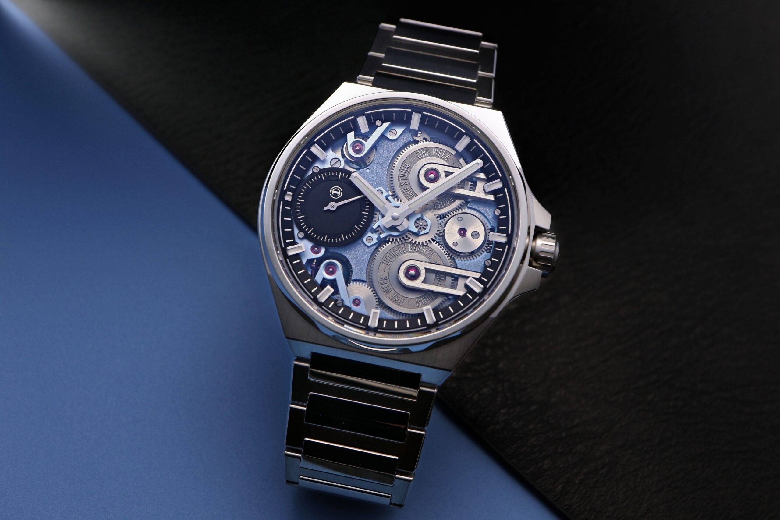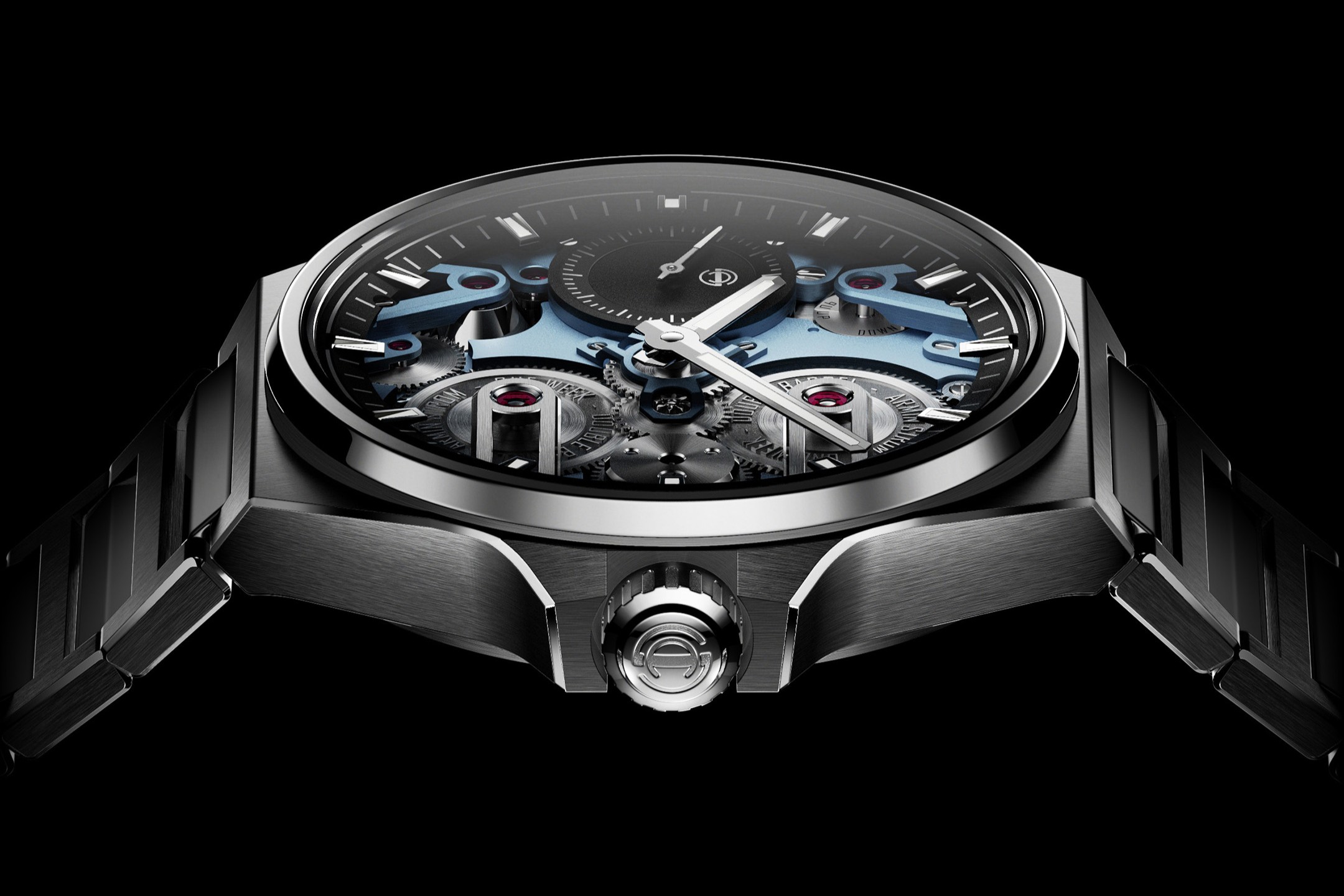 「ワンウィーク ファーストエディション」のためにデザインされた、流線型のフォルムを持つ新しいケースは、モダンでスポーティな印象を与えます。ステンレススティール製のケースは、直径41mm、厚さ10.6mmという絶妙なサイズ感で快適な装着感を実現。サテン・ブラッシュ仕上げとポリッシュ仕上げのリンクで構成された一体型スティールブレスレットは、装着感を高め、腕元にしっくりと馴染みます。