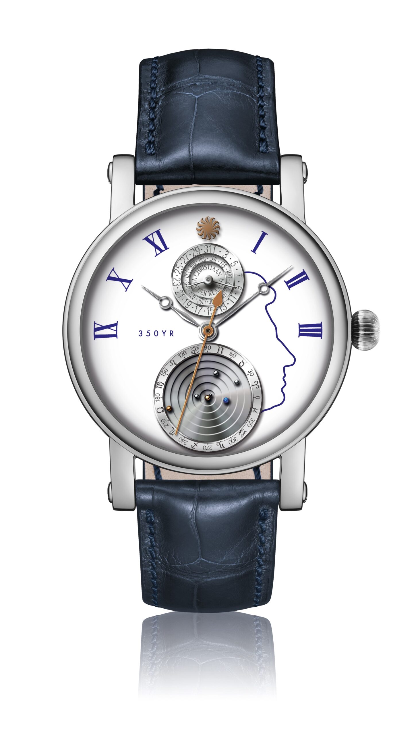 世界的にも著名なオランダの科学者、クリスティアン・ホイヘンスは、科学革命を代表する偉人のひとりとして知られています。今から350年前の1675年、彼が発明した「ひげゼンマイ」は、現代の機械式時計の基礎を築いた画期的な技術でした。この偉大な功績に敬意を表し、ホイヘンスの肖像と特別な刻印をあしらった、エナメル文字盤の特別モデルをご用意しました。歴史と革新が融合した、極めて希少な1本です。