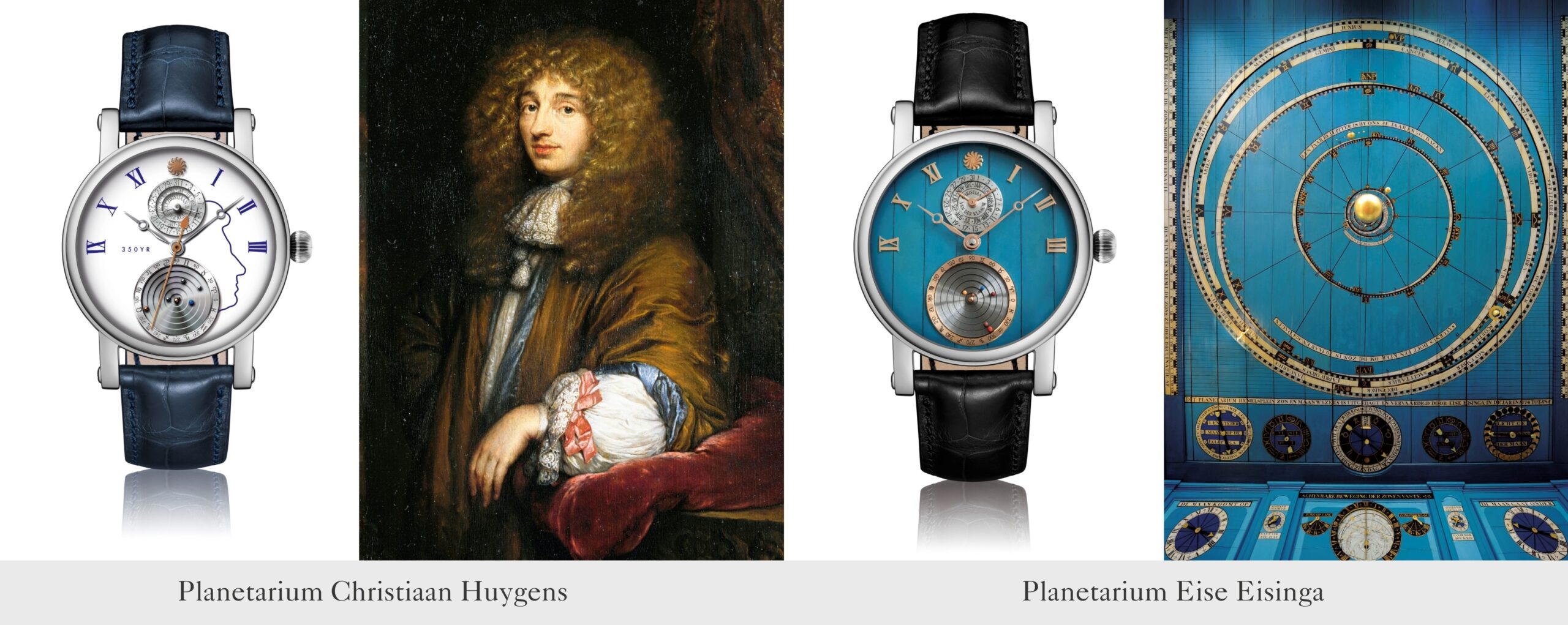 ホイヘンスの発明350周年を記念した限定6本の特別モデルは、6つの惑星が描かれたプラネタリウム・ウォッチです。エナメルダイヤルには、ホイヘンスの肖像をハンドペイントで描き、秒針にはオランダのナショナルカラーであるオレンジをあしらいました。