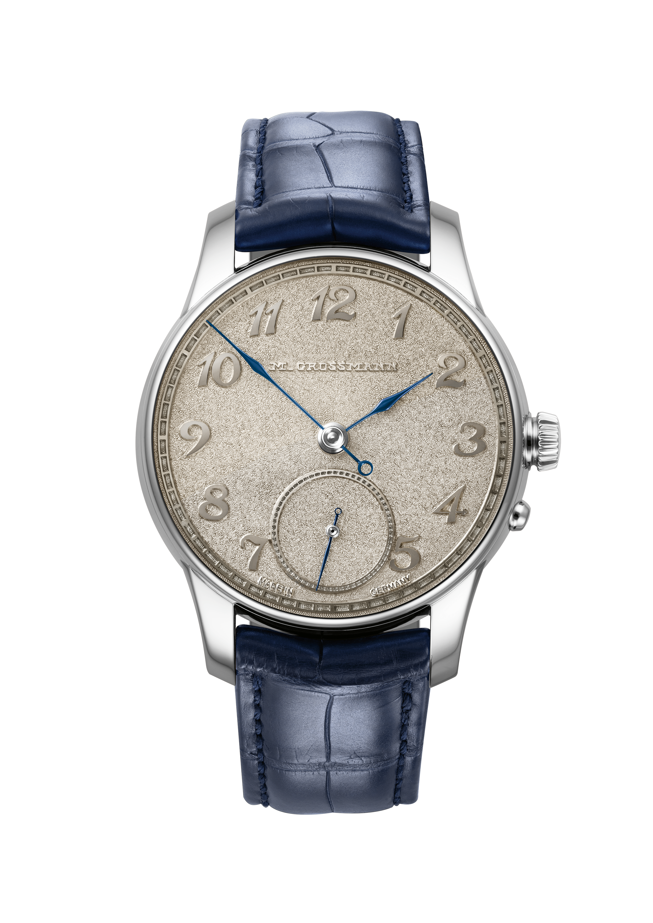 ドイツ・グラスヒュッテに本拠を置く、最高水準のクラフトマンシップを誇る独立系時計メーカー。「最も美しいドイツの職人技(Schönstes deutsches Handwerk)」を哲学に掲げ、年間生産本数もごくわずか(数百本程度)に抑え、手作業による完璧な時計作りを追求しています。ブランド名は、19世紀にドイツ時計産業の聖地グラスヒュッテの発展に大きく貢献した伝説的な時計師、カール・モーリッツ・グロスマン(1826〜1885年)に由来します。彼はA.ランゲ&ゾーネの創業者であるフェルディナント・アドルフ・ランゲらと共に、グラスヒュッテの時計産業の礎を築きました。時計製造会社の経営だけでなく、1878年にドイツ時計学校を設立し、理論と実践の両面で後進の育成にも尽力した重要人物です。