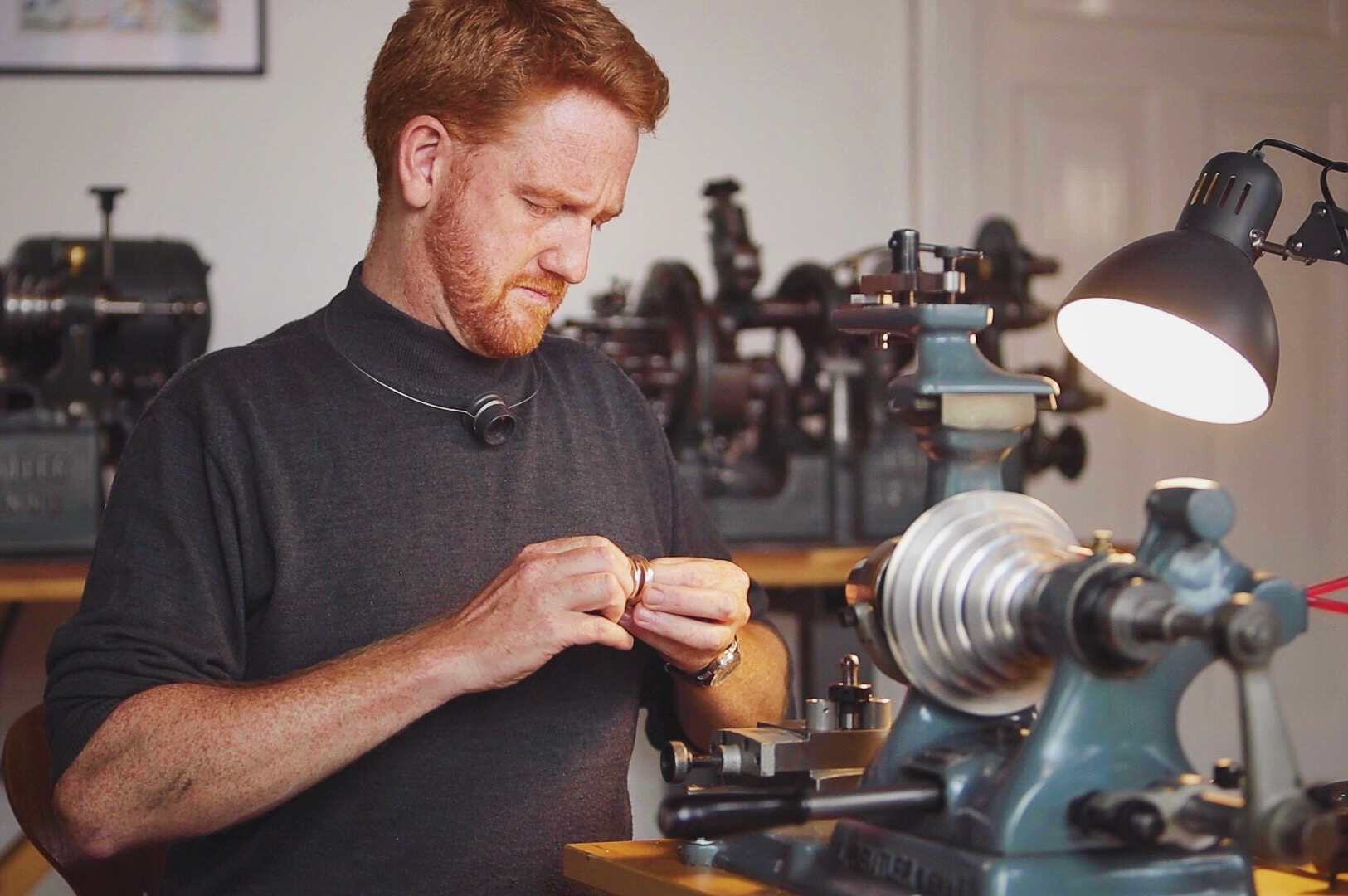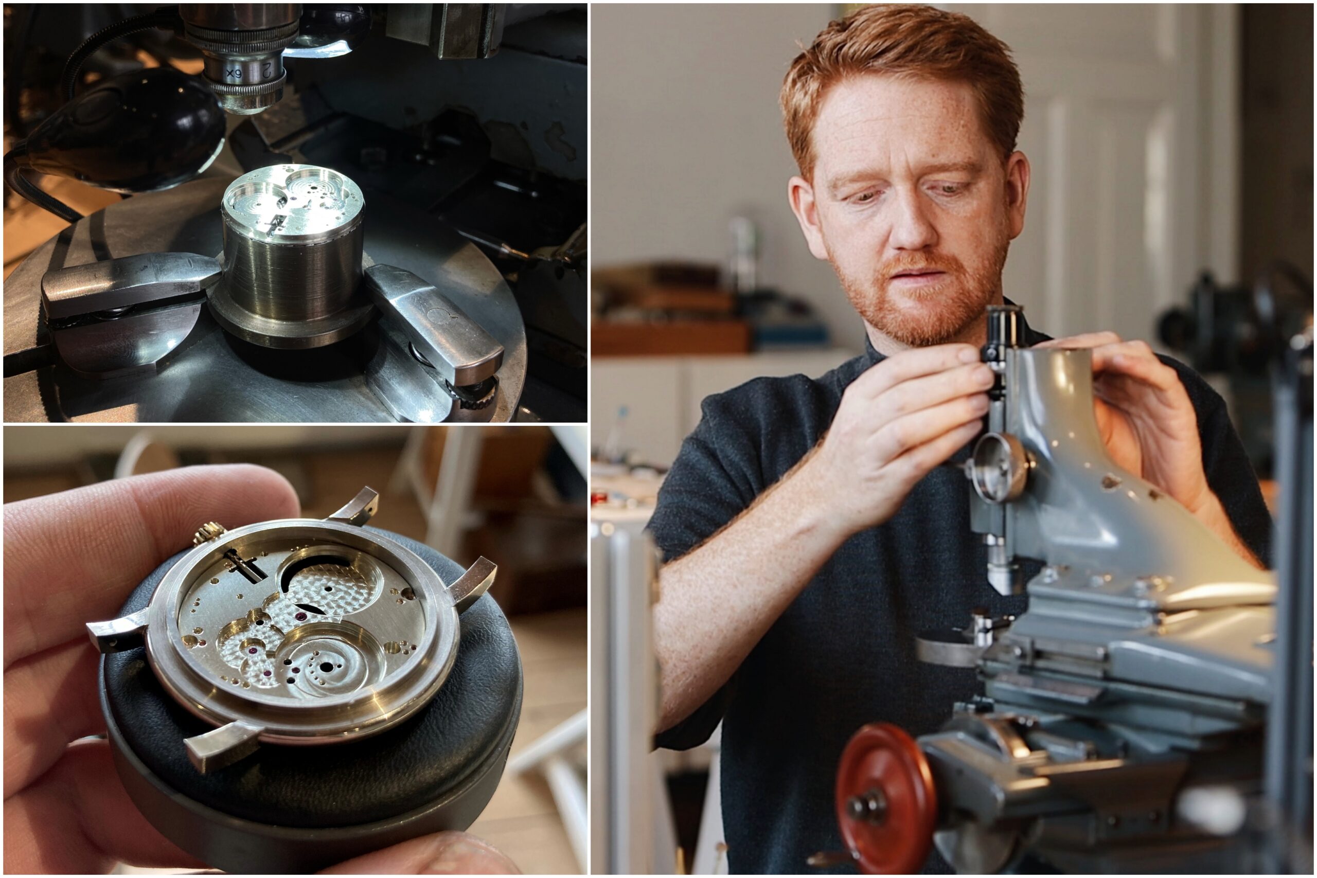 ラス氏の哲学は「数百年後も修理可能であり、価値を保ち続けること」にあります。そのため、ムーブメントの地板やブリッジには伝統的なジャーマンシルバーを採用し、旋盤を用いたパーツ製作から繊細な面取りに至るまで、その多くを自らの手作業で行っています。