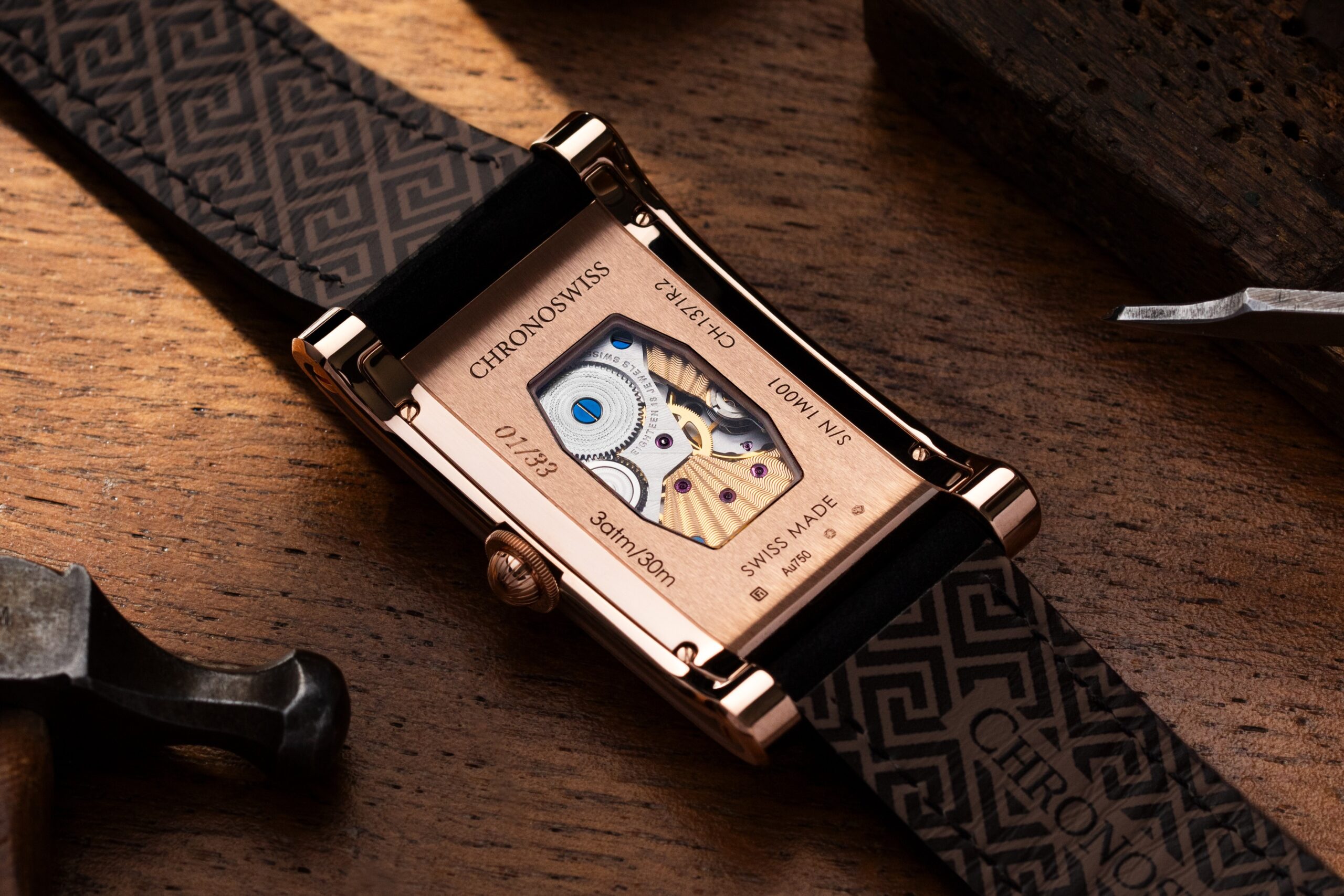 本作は単なる再解釈ではありません。ルツェルンの自社アトリエで、熟練の職人が5Nゴールド製ケースに一彫りずつ手作業で施した彫刻は、「立体的な時計芸術」へと変貌させました。中央に鎮座するのは、古代ギリシャの時の神であり、ブランド名の由来でもある「クロノス(Chronos)」です。この緻密なエングレービングは単なる装飾ではなく、時計の物語を紡ぐ「骨格」そのものなのです。
