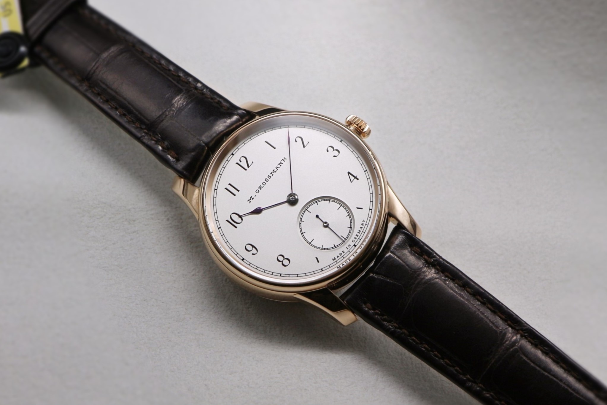 ドイツ・グラスヒュッテに本拠を置く、最高水準のクラフトマンシップを誇る独立系時計メーカー。「最も美しいドイツの職人技(Schönstes deutsches Handwerk)」を哲学に掲げ、年間生産本数もごくわずか(数百本程度)に抑え、手作業による完璧な時計作りを追求しています。ブランド名は、19世紀にドイツ時計産業の聖地グラスヒュッテの発展に大きく貢献した伝説的な時計師、カール・モーリッツ・グロスマン(1826〜1885年)に由来します。彼はA.ランゲ&ゾーネの創業者であるフェルディナント・アドルフ・ランゲらと共に、グラスヒュッテの時計産業の礎を築きました。時計製造会社の経営だけでなく、1878年にドイツ時計学校を設立し、理論と実践の両面で後進の育成にも尽力した重要人物です。