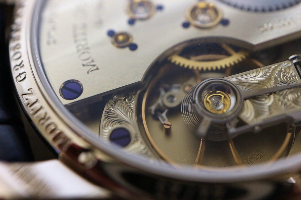 エナメル文字盤の名門工房であるドンツェ・カドラン製の文字盤は、非常に滑らかながらエナメルならではの独特の“揺らぎ”を感じさせます。